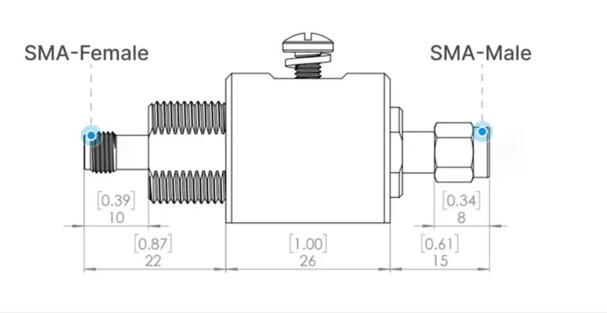 SMA-Male to SMA-Female bulkhead lightning arrester, 0-6000 MHz frequency support, 50 Ω impedance